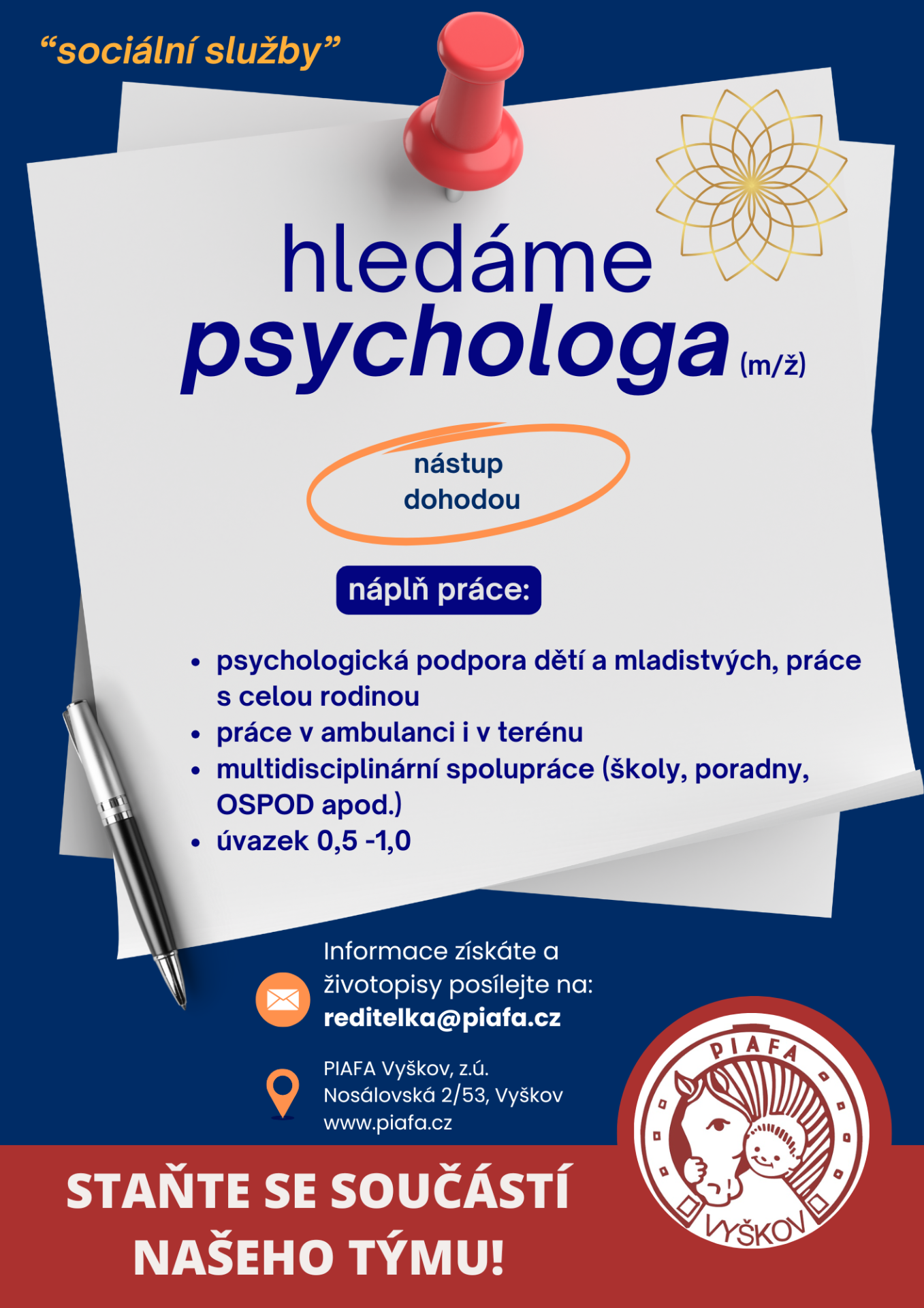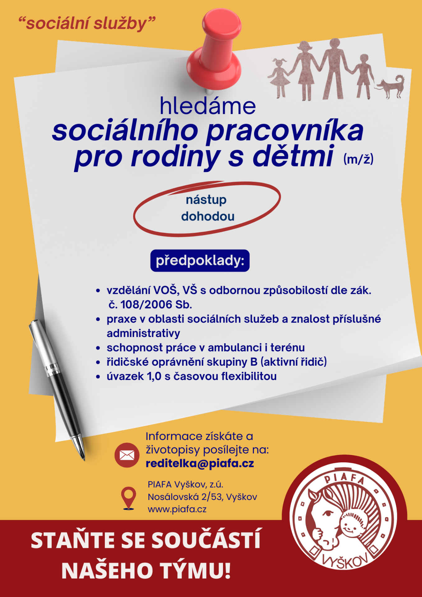 🏡 Sociálního pracovníka pro práci s rodinami s dětmi